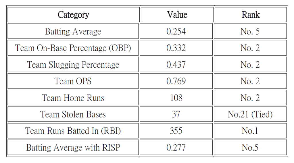 This year, the Yankees have had stable main players at various positions. Compared to previous seasons when injuries impacted their offensive performance, this year they have not been troubled by ‘health issues,’ allowing them to excel in multiple positions.
