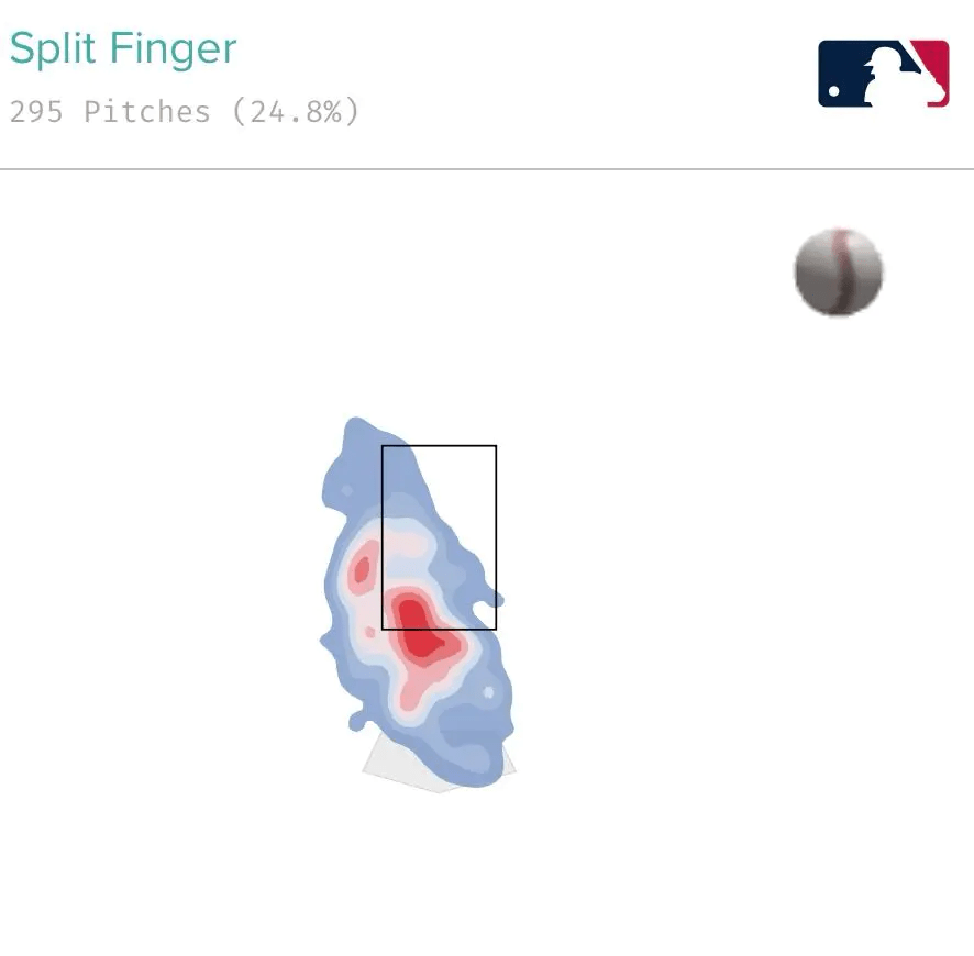 Below is the distribution of Yoshinobu Yamamoto’s splitter pitch locations:
