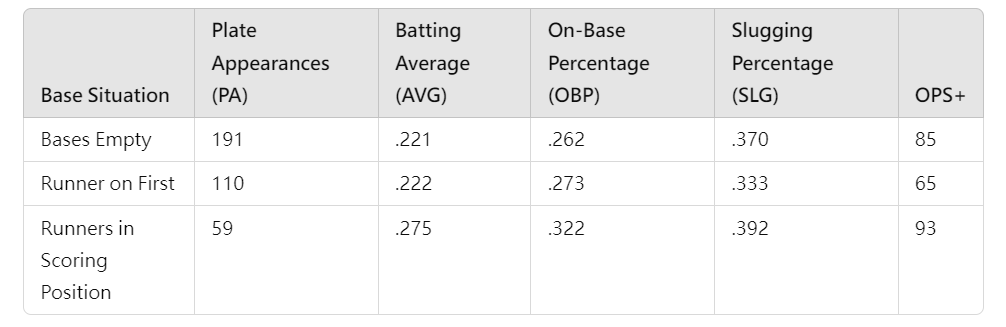 Below is the data for Yuki Matsui in 2024 for different situations on base against batters.