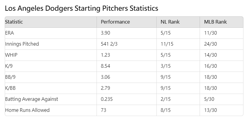 Here are the statistical rankings for the Los Angeles Dodgers’ starting pitchers: