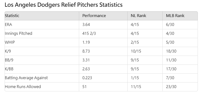Here are the statistical rankings for the Los Angeles Dodgers’ bullpen pitchers: